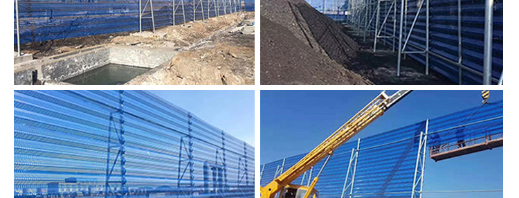 雙峰防風抑塵網(wǎng)是利用空氣動力學(xué)原理,按照實施現(xiàn)場環(huán)境風洞實驗結(jié)果加工成一定幾何形狀、開孔率和不同孔形組合擋風抑塵墻,使流通的空氣(強風)從外通過墻體時,在墻體內(nèi)側(cè)形成上、下干擾的氣流以達到外側(cè)強風,內(nèi)側(cè)弱風,外側(cè)小風,內(nèi)側(cè)無風的效果,從而防止粉塵的飛揚。